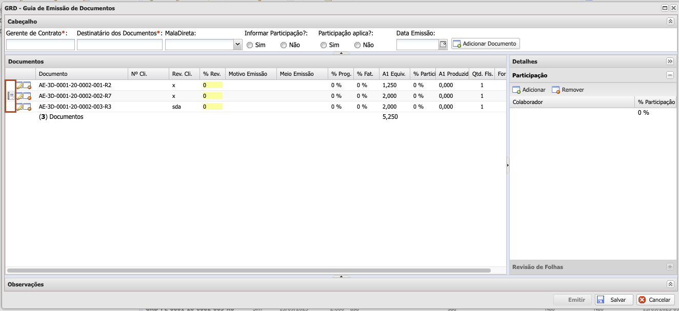 - Nessa situação, o usuário de planejamento poderá solicitar ao desenhista/projetista que providencie a cópia referente à revisão do documento.